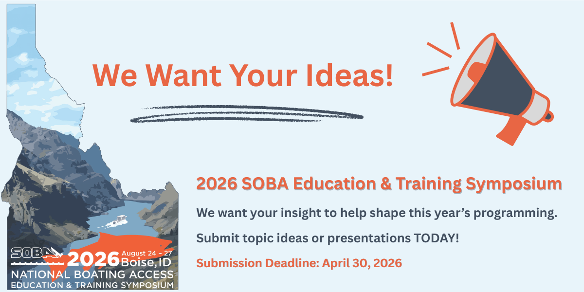 Planning is underway for the 2026 SOBA Education & Training Symposium, and we want your insight to help shape this year’s programming. As a member-driven association, SOBA is committed to delivering sessions and learning experiences that are timely, relevant, and aligned with the real needs of boating access professionals across the country.